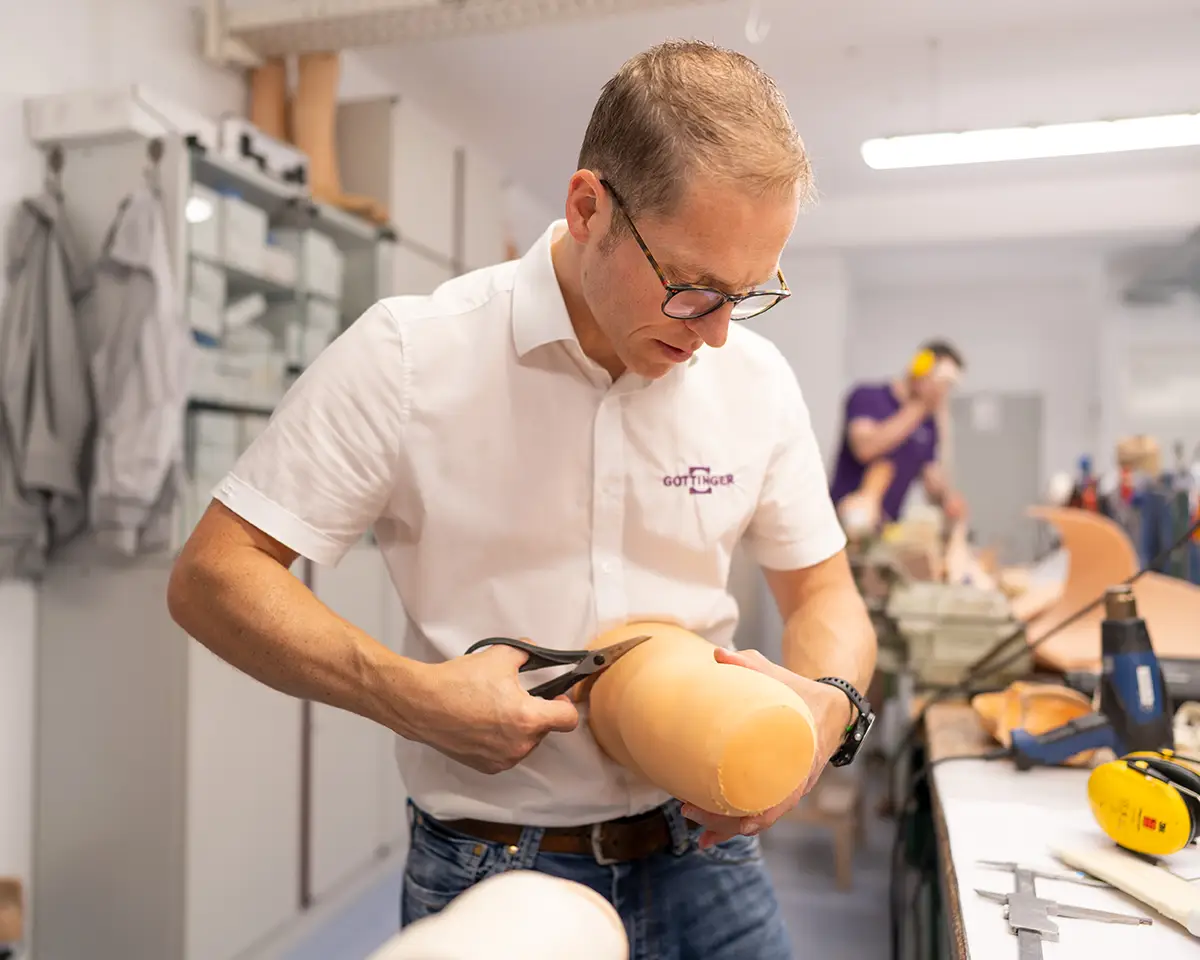 Ein modernes Kniegelenk allein reicht nicht – entscheidend ist der perfekt passende Schaft. Mit Erfahrung, handwerklichem Können und Feingefühl sorgen wir dafür, dass Ihre Prothese alle Bewegungen im Alltag, Beruf und Sport ermöglicht.