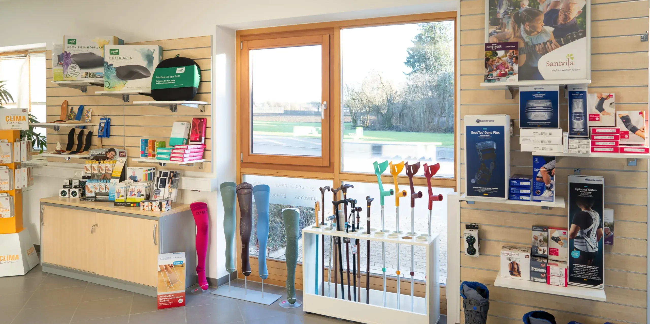 Vor Ort und in unserem Online-Shop finden Sie bewährte Hilfsmittel und hochwertige Medizinprodukte, die Ihnen den Alltag erleichtern – sowohl zu Hause als auch unterwegs. Entdecken Sie Technik rund um den Sanitätsbedarf sowie nützliche und schöne Dinge, die Ihre Mobilität und Lebensqualität in jedem Lebensalter verbessern.